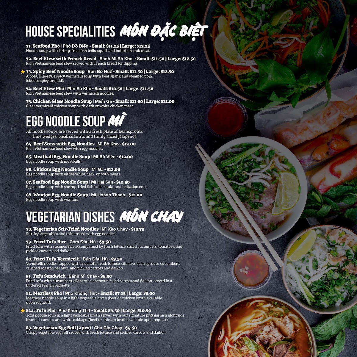 Vegetarian options are also plentiful, with dishes like the Fried Tofu Rice (Cơm Đậu Hủ) offering a hearty, satisfying meal without meat. For those in search of lighter fare, the Vegetarian Stir-Fried Noodles (Mì Xào Chay) are a delicious mix of seasonal vegetables tossed with egg noodles, ensuring every bite is an explosion of taste for just $10.75.